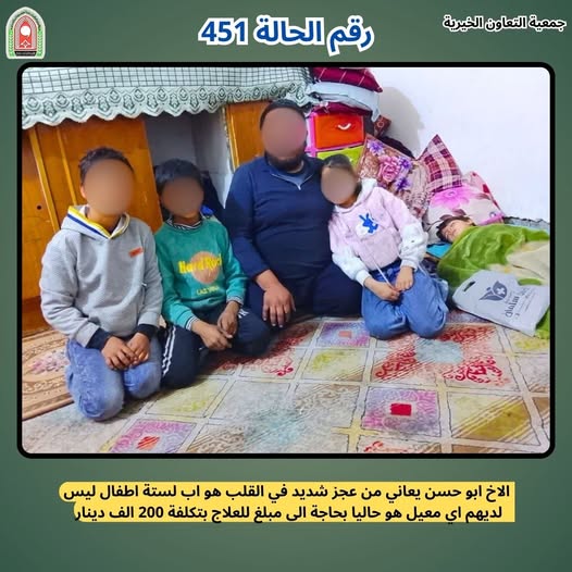 وحاليا هو بحاجة الى مبلغ 200 الف دينار رقم الحالة 451 مفتوح التبرع من الف دينار و صاعدا