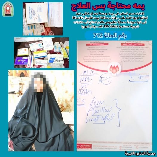 هذه كلمات الاخت سحر بحاجة الى مبلغ علاج شهري بتكلفة 150 الف دينار التبرع مفتوح من الف دينار وصاعدا حسب رغبة المتبرع رقم الحالة 712