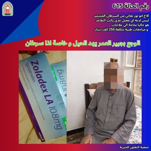هذه كلمات الحاج ابو نور يعاني من السرطان وبحاجة الى علاج ومصاريف شهرية 250 الف دينار